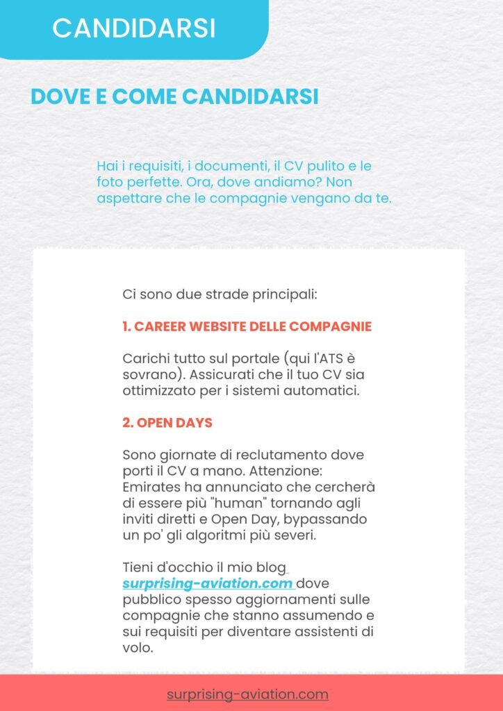 Questa non è un piccolo manuale tecnico. Ho condensato qui le regole di formattazione e di immagine che le compagnie aeree pretendono, ma che nessuno ti spiega chiaramente.